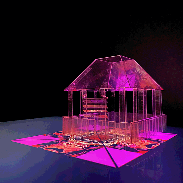 Experiments with scale model of my old man's umu (🇼🇸 cooking house) set to stage "hologram" projections #wip (press play/click)